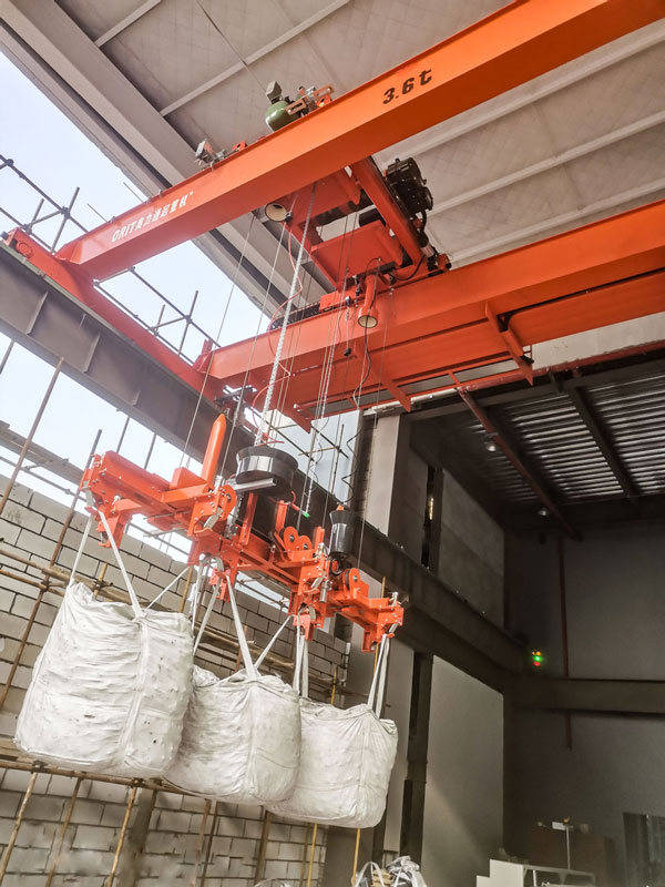 在党101周年生日庆祝之际,大满贯起重机完成“三袋联吊”智能吨袋起重机交付,该产品一次可吊运三袋吨袋,自动脱钩,自动装车;“三袋联吊”世界首创,生产效率提升300%,节约人工70%;广泛应用于食品、化工、矿业、冶炼等粉末状或颗粒状物料的吨袋自动装卸。